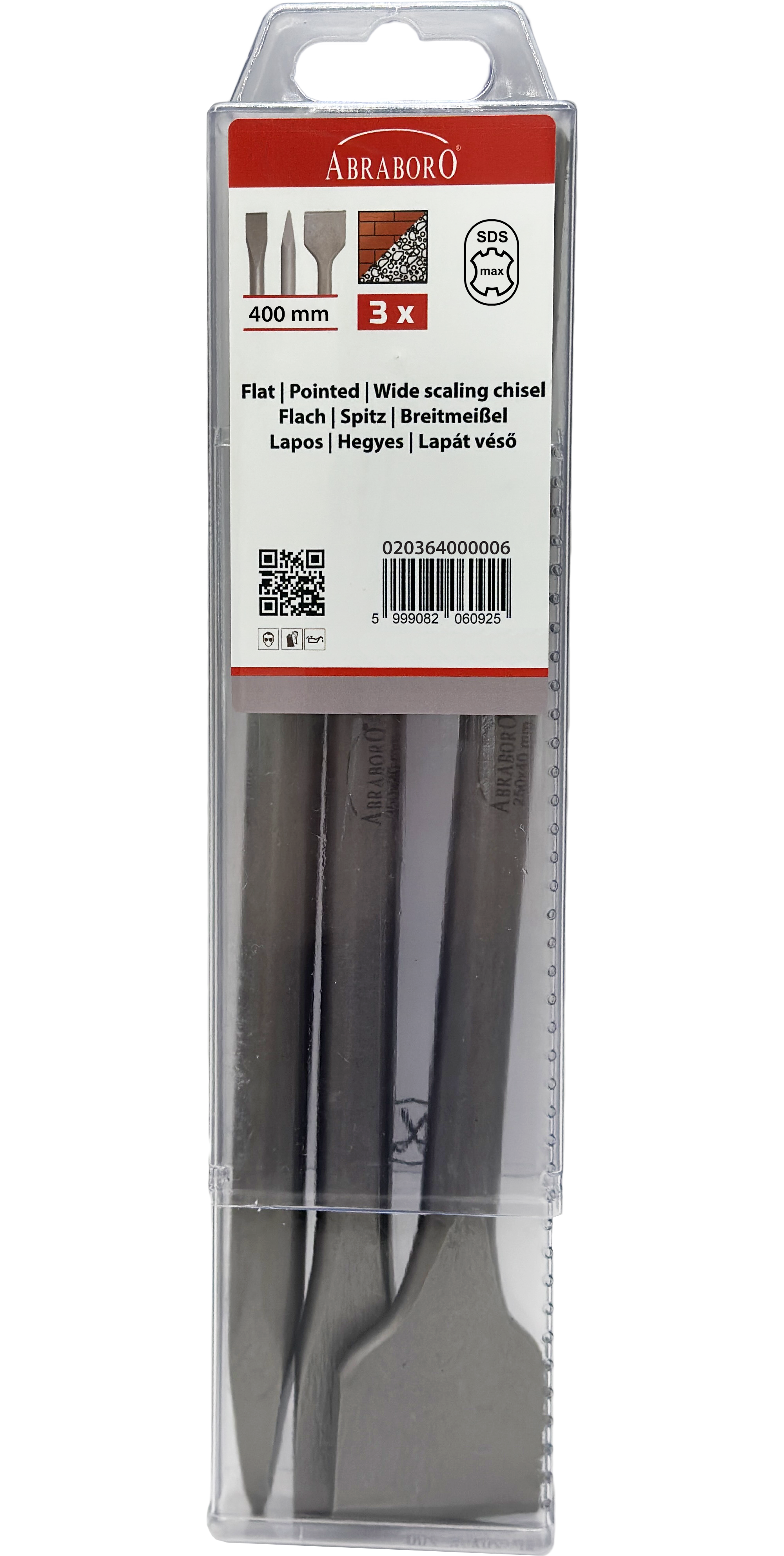 Abraboro SDS-max vésőkészlet (lapos, hegyes, lapát), 3 részes